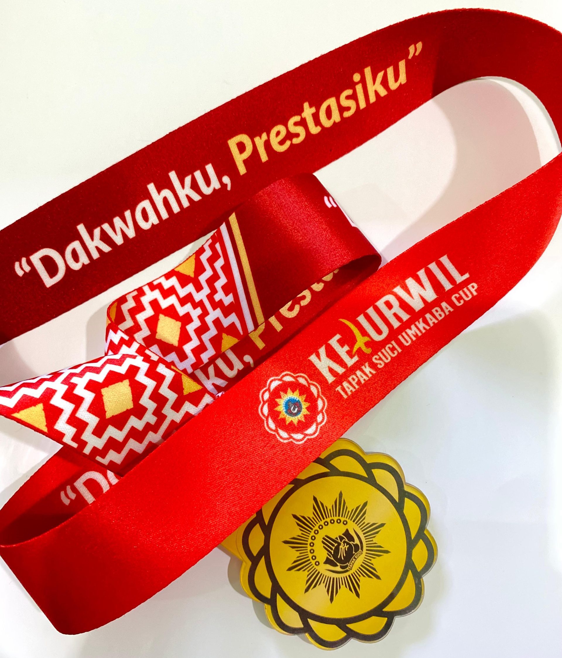 Medali berbahan akrilik yang mempunyai ketebalan 2 mm setiap sisinya, dibekali tali lanyard dengan lebar 3 cm yang memiliki desain custom sesuai keinginan anda.
